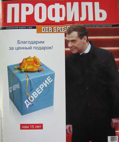 Илья в восторге от обложки журнала "Профиль". Реклама там очень кстати. Даже сначала и не поймешь, что это реклама, а не просто обложка.