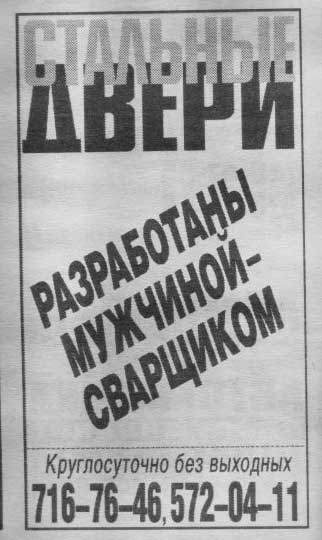 Владимир настоятельно рекомендует приобретать только те стальные двери, которые разработаны мужчиной-сварщиком. Потому что двери, разработанные женщиной-кондитером, плохо закрываются. Зато приятно пахнут ванилью.