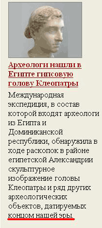 Ну, судя по представленной голове Клеопатры, археологи использовали какие-то галлюциногены. Хорошо еще, что в следующую эру не забрались.