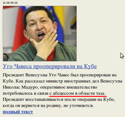 На фото Чавес демонстрирует всем желающим свой абсцесс.