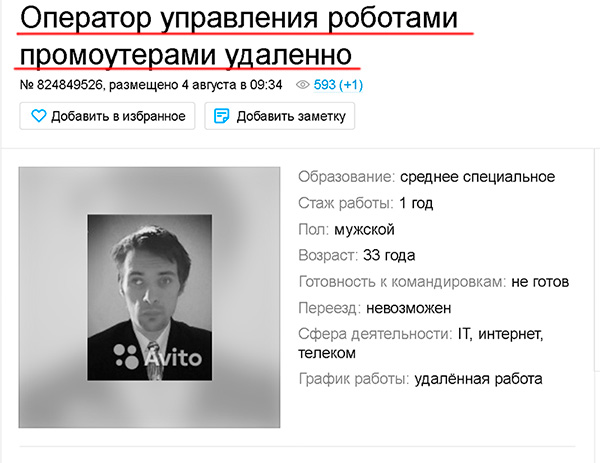 Более того, на скрине не вакансия, а резюме. То есть такую работу не предлагают, а как раз ищут.
