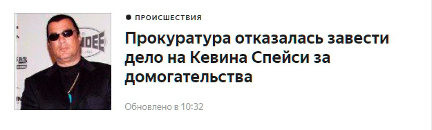 А Спейси, видимо, домогался Сигала, но Стивен не дремал, поэтому прокуратура не смогла завести дело - за отсутствием ответчика.
