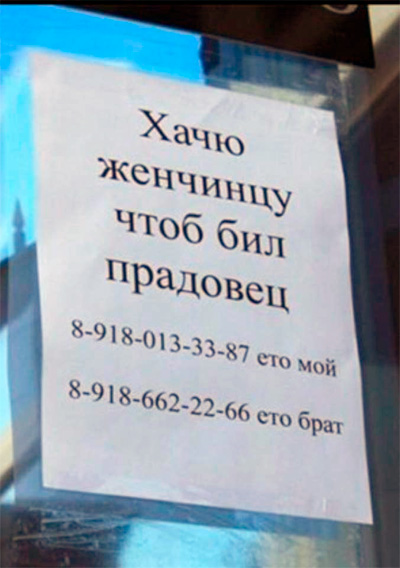 Смищно 😄 В случае "женщицы-прадовца" просто не могу представить человека, способного так изложить свои мысли, а потом набить их и отправить на печать 😄