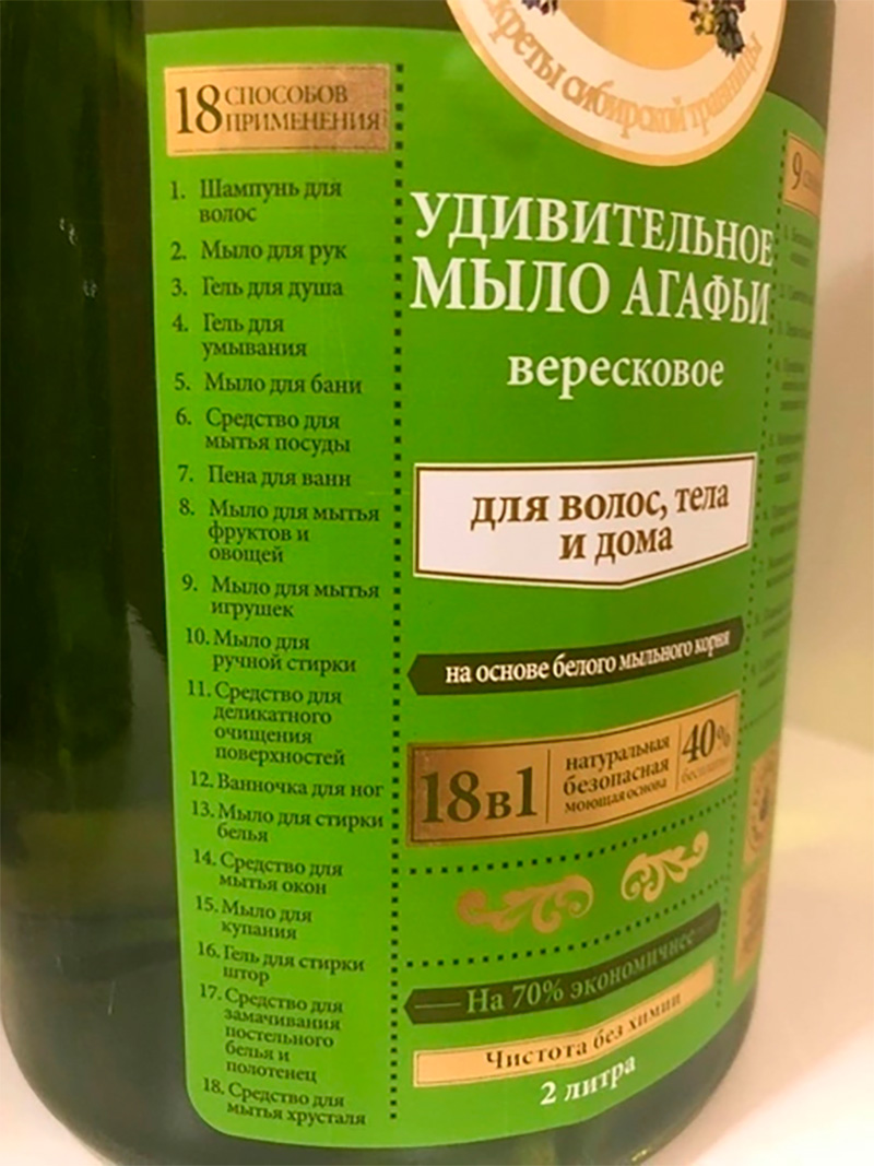 Это хорошая мысль, считает Ирина. Выпускаешь обычное мыло. Пишешь на упаковке "18 в 1" (больше просто на этикетке не поместится, так бы было "50 в 1"). Ну и перечисляешь, что это и мыло, и гель, и для лица, и для хрусталя, и для веревки, для грубой очистки, для деликатного очищения, для мытья игрушек, для бережного мытья пениса и ушей, а если им помазать пол, то на полу можно кататься, как на коньках. Универсальная, в общем, вещица.