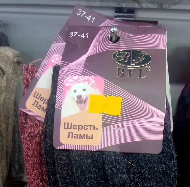 Если шерсть - ламы, то почему на этикетке изображена собака? Ну, знаете, сейчас другие времена. Если собачка Жучка идентифицирует себя как ламу, то так тому и быть!