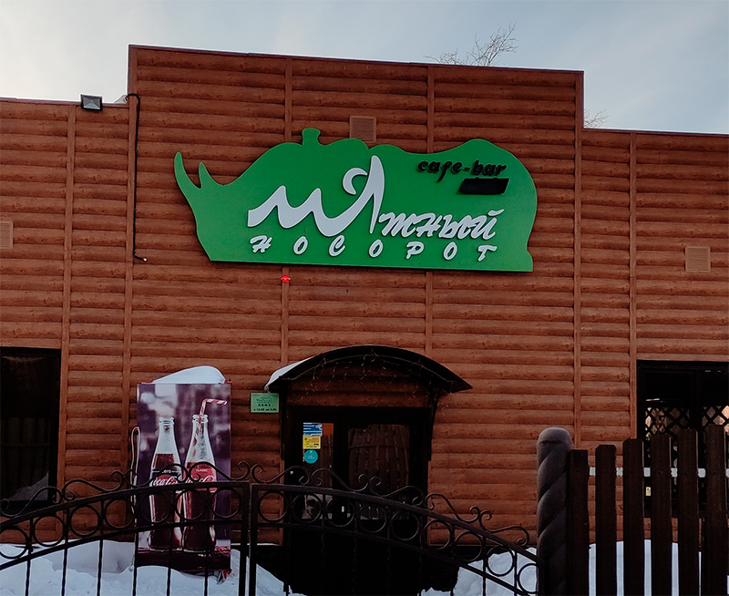 Наш эксперт кот Бублик считает, что это какой-то носорог. Таежный, творожный, млтный, шлтный. В общем, носорог, находящийся в легкой в поэтической флегме. Тут главное - что? Это - кафе-бар. А значит, там наливают. Ну и какая вам разница, какой это носорог?