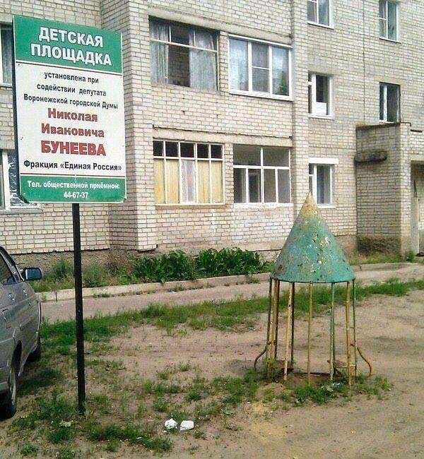 Я тоже сомневаюсь, что депутат на свои деньги строил (обычно на это идут средства т.н. "депутатского миллиона"), и не считаю красивым вешать такие плакаты (независимо от наличия площадки), но обвинять на основе догадок вместо фактов - занятие недостойное.
