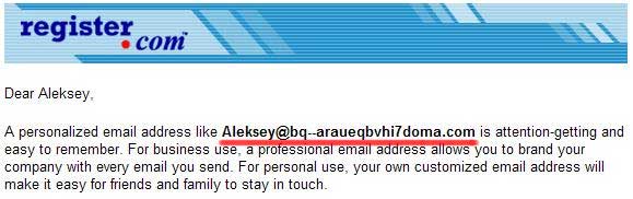 Алексей Максимов пытался найти для себя простой и легко запоминающийся домен. Служба Register.com ему тут же предложила e-mail, не запомнить который практически невозможно: