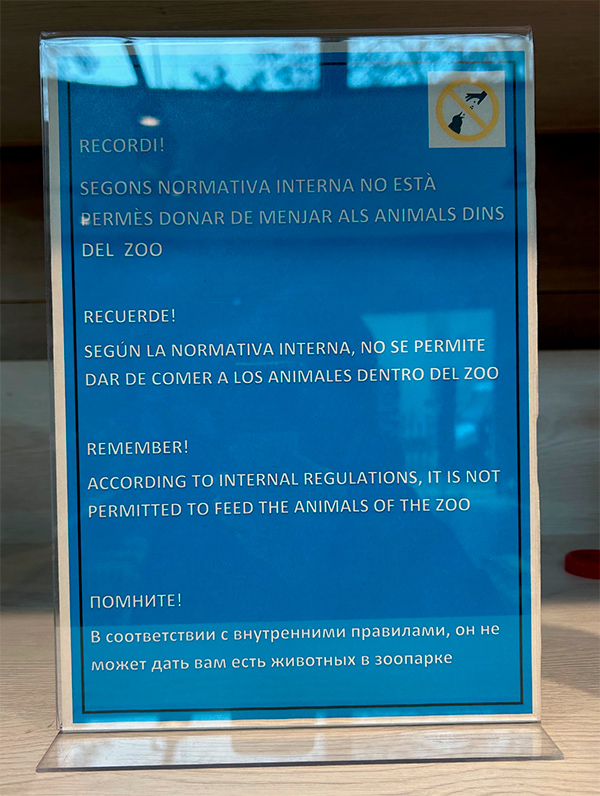 "Согласно внутренним правилам, кормить животных на территории зоопарка запрещено."