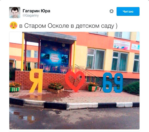 В детском саду Старого Оскола, рассказал Юра, любят "69". Я тоже в детстве любил "69". Да я и сейчас люблю "69", потому что детская любовь - она не ржавеет!