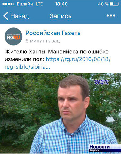На самом деле пол ему изменили в паспорте, но заголовок - впечатляет.