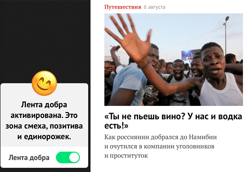 Элина настоятельно рекомендует всем включать "Ленту добра" в издании Lenta.ru. После этого там будут только добрые новости.