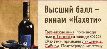 Да, это логично. Если учесть то, что в Сибири пьют только водку, грузинское вино, произведенное в Томске, - оно в Сибири лучшее. Среди вин, произведенных в Томске.