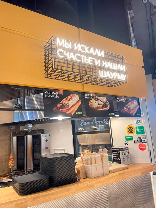 Интересный креатив, считает Кошкин Дом. То есть искали счастье, счастья не нашли, пришлось есть эту чертову шаурму. Тогда лучше так написать: "Счастья нет. Возьми шаурмы".