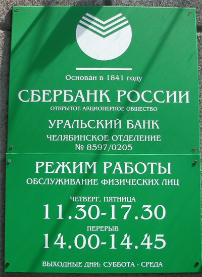А челябинский сбербанк работает все же 5:15. Не бог весть что, но это на 10% больше. Поправить бы.