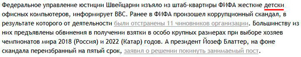 У ФИФА-то кроме коррупции еще и жесткие детски обнаружили! За это вообще свободно двадцаточку можно схлопотать!