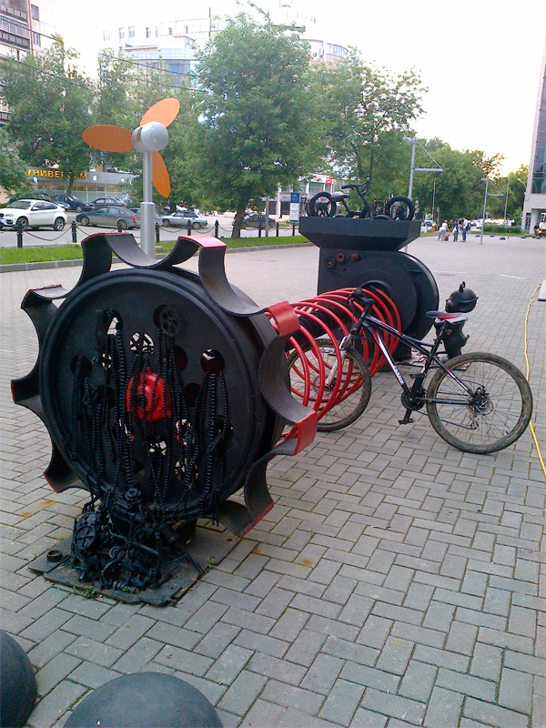 В славном городе Екатеринбурге стоянки для велосипедов настолько суровы, рассказал Дмитрий.