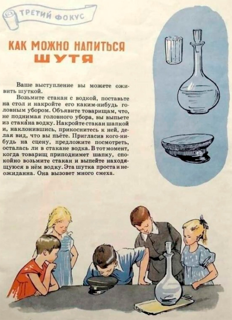 Интересно. На иллюстрации к фокусу с водкой - одни дети.