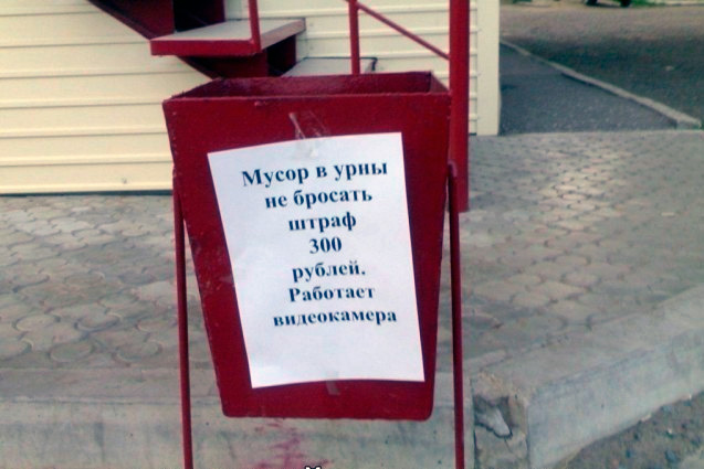 Дело не в причинно-следственной связью между призывом к тому, чтобы не бросать мусор и тем, что работает видеокамера. С этим-то как раз все понятно.