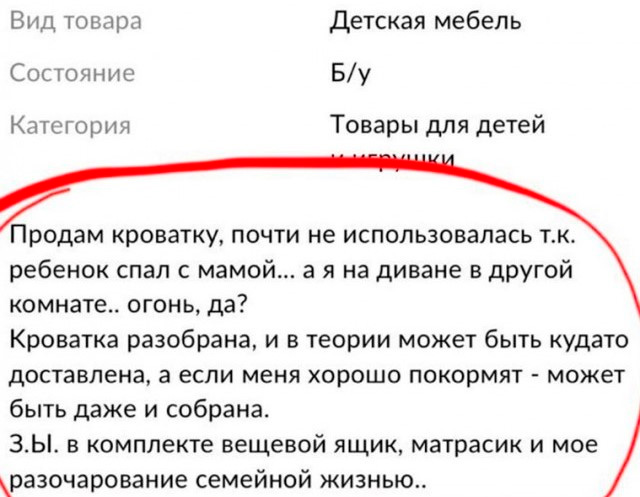 Целая жизнь в одном объявлении! Целая жизнь!