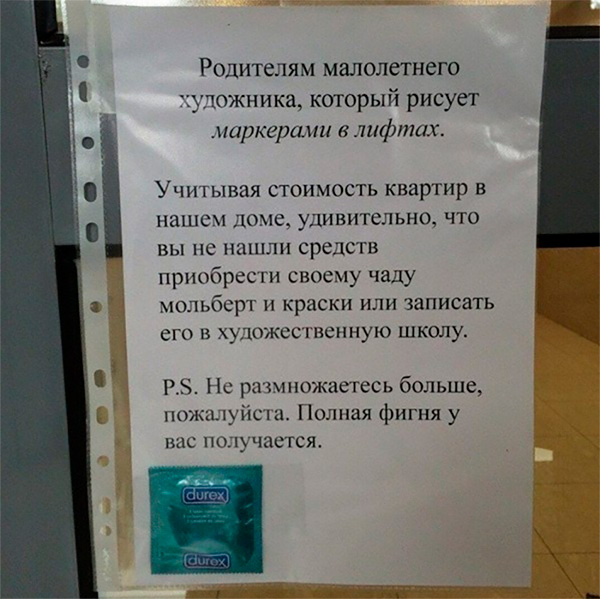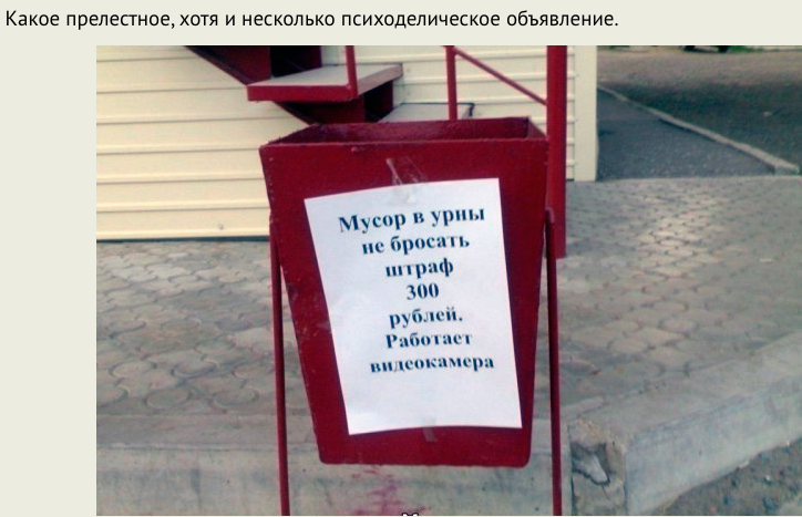 Что психоделического в объявлении на урне? Пояснительную бригаду, пожалуйста.