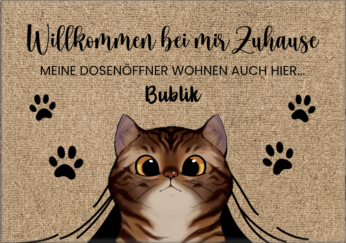 У нас можно вот такой коврик заказать, имя и внешность кота можно выбрать при заказе.