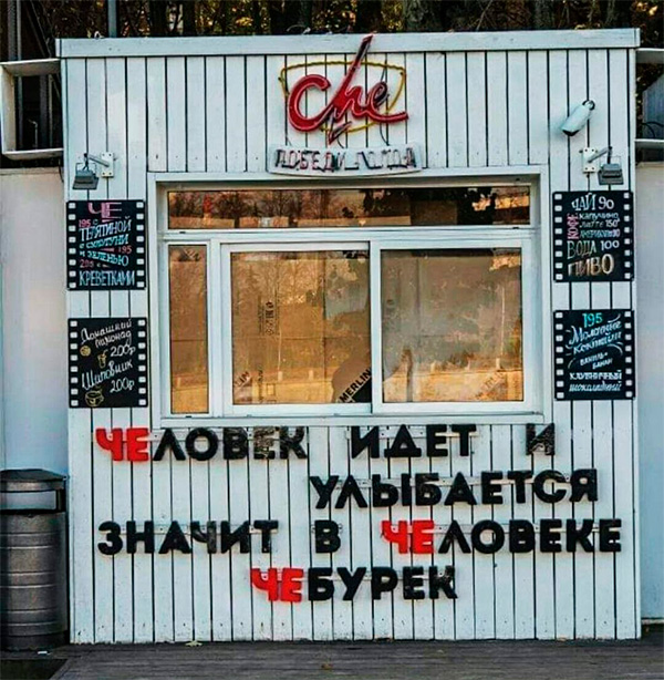 А вот с этим смелым заявлением, кстати, можно поспорить. Почему в человеке именно чебурек? Может, он улыбается, потому что в нем - полбутылки водки!