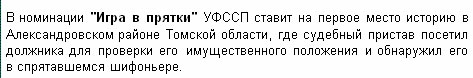 А и правда - заслуженный первый приз, считает Kgrabovsky. У должника спрятался шифоньер, тот его нашел и, в свою очередь, в него спрятался.
