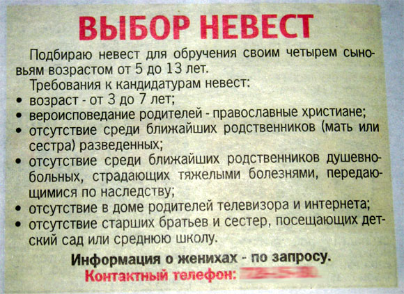 Серьезный человек, восхищается Галина. Что интересно, объявление было помещено в раздел "Телепрограмма". Наверняка его там прочитают те, у кого нет телевизора.