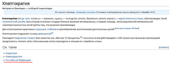 В "Википедии" очень показательна ссылка по теме в статье о клептократии, считает Алексей.