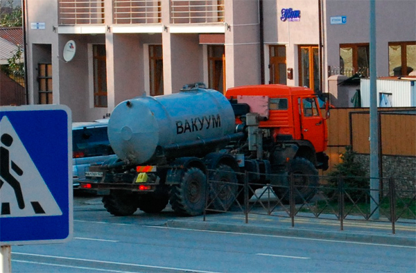 Оно, конечно да, грузовик с полной цистерной жидкого вакуума на улицах города - это было бы из ряда вон, но думаю, что конкретно эта цистерна - пустая.
