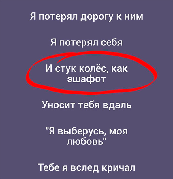 Ktibr слушает инди-исполнительницу Polnalyubvi и попались ему в одной из песен такие величественные строки.