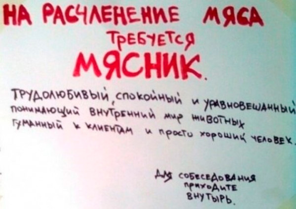 ЗЫ. Внутырь в объявлении про мясника - это родственник Вуглускра?