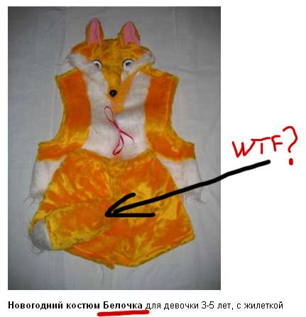 "Новогодний костюм белочка" - действительно лисица, но только из фотки ясно видно, что хвост на ОТДЕЛЬНЫХ штанишках, просто повёрнутых задней стороной, чтобы на фото был виден хвост.