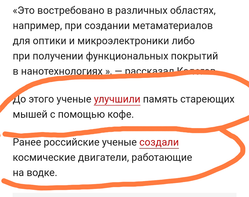 То же самое с мышами и двигателями. Двигатели, правда, были не на водке, а на спирту, и ученые были не российские, а немецкие, но это мелочи.