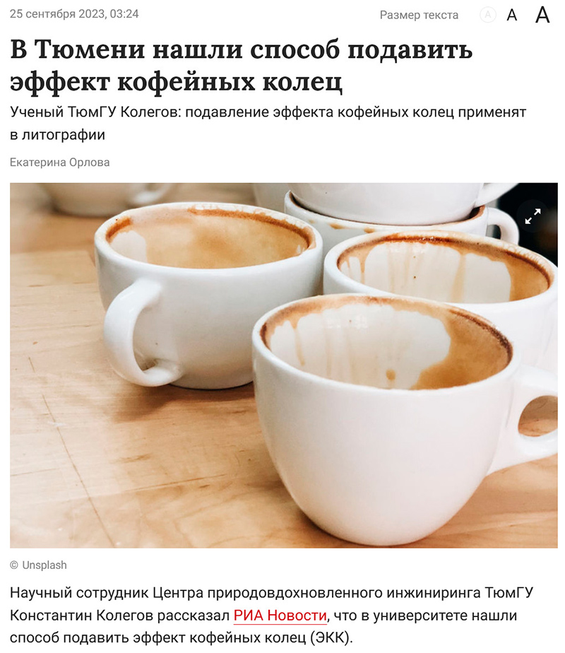 Как по мне, так там многоходовочка. Вначале с помощью кофе улучшили память старых мышей. Те вспомнили секрет космической ракеты на водке. Слетали и узнали у инопланетян, как подавть эффект кофейных колец. Вполне себе природовдохновленный инжиниринг.