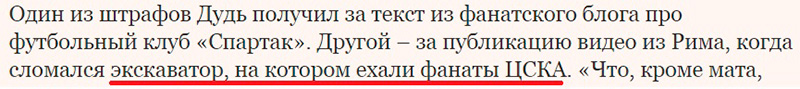 У "Ведомостей" фанаты ЦСКА ехали на экскаваторе, рассказал Дмитрий. Интересно, чем ответят фанаты "Спартака"? Поездкой на подъемном кране?