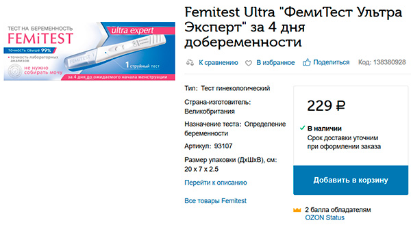 Екатерина настоятельно рекомендует приобрести на "Озоне" крайне инновационный британский тест, который определяет беременность ровно за 4 дня до наступления беременности.