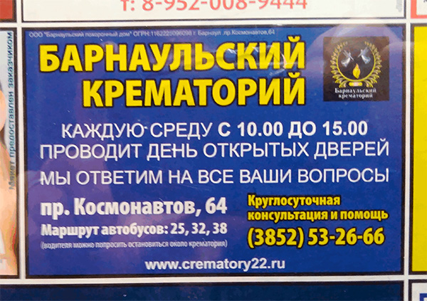 День открытых дверей в крематории - это же совершенно прелестно, считает RZ. А как же акции? Каждая третья кремация - бесплатно!