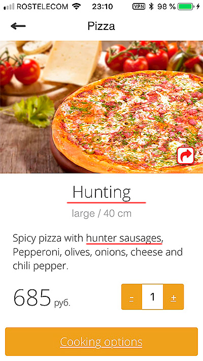 Компания "Мир пиццы", рассказал Евгений, уже приготовилась к Чемпионату мира по футболу. Все перевела на английский. И над доставкой поработала - теперь у нее пиццу будут доставлять кораблями.