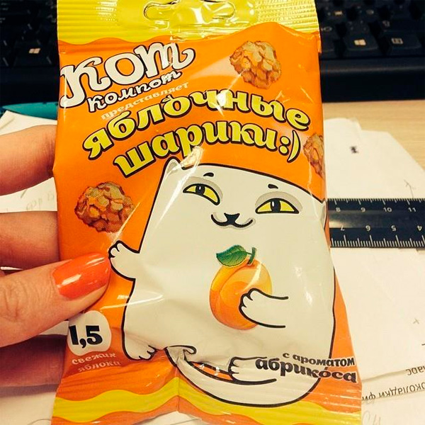 Кот компот яблочные шарики с ароматом абрикоса - это красиво, считает Ян. Теперь ждем лису колбасу грушевые котлетки с ароматом банана.