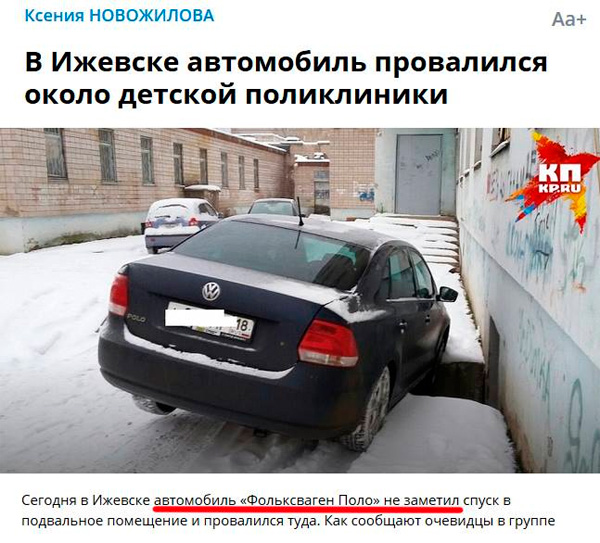 "... автомобиль Фольксваген Поло не заметил спуск..."
