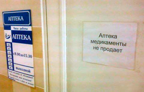 А аптека, очевидно, больничная. У нас в больнице аптека тоже медикаментами не торгует.
