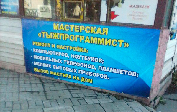 А что - классное название, считает Марат. Я тоже считаю, что классное. Программисты уж точно оценят! А то это "Тыжпрограммист, почини мне принтер" - достало неимоверно.