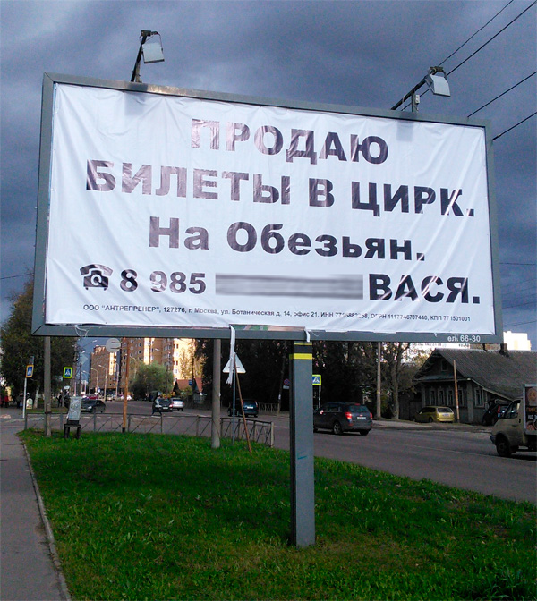 Такой и должна быть реклама, считает Евгений. Простой. Незамысловатой. Эффективной. На обезьян.