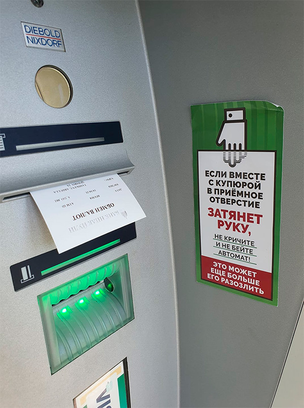 При общении с банкоматом, замечает Борис, соблюдайте правила безопасности.