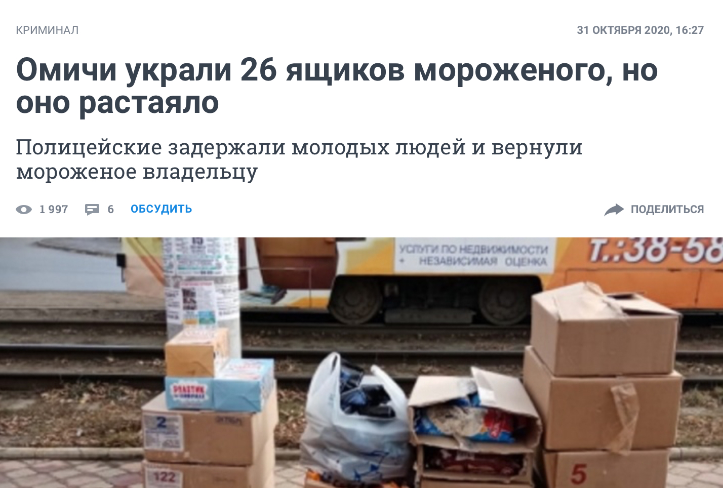 Напомню, омичка умыкнула 2 моста от УАЗа. Два омича украли мороженое.