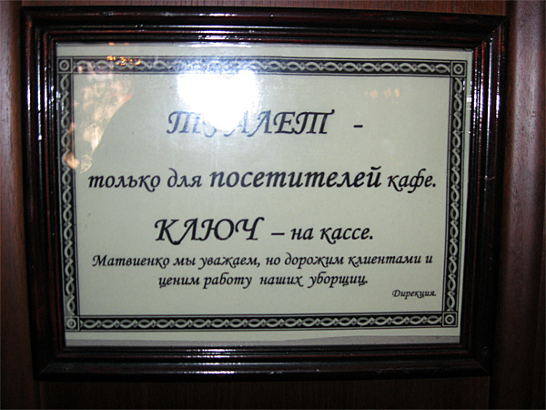 Вот ведь как, удивляется Михаил В. Будь ты хоть сто раз губернатором, любимицей Путина и подругой самой Кони, в туалет на халяву пописать - тебя не пустят. А то повадилась тетя Валя бегать, понимаешь...