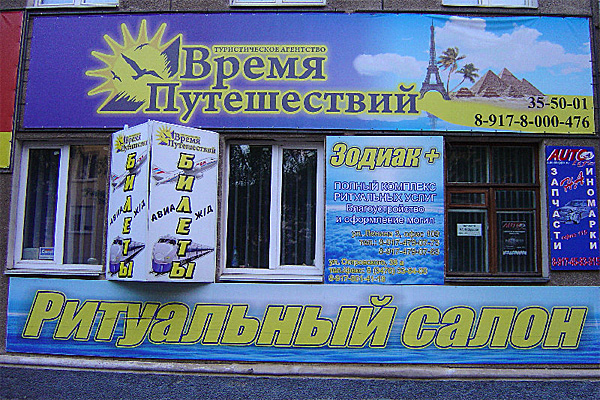 Хорошее название для салона ритуальных услуг - "Время путешествий", считает Kolombo. Прям поэтично получилось.