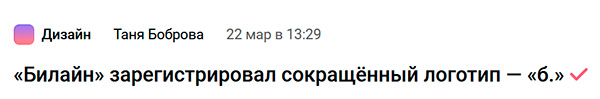 Сокращенный логотип - так сокращенный логотип, считает Дима. Как говорится, "за связь без б."... Но, конечно, интересно, чем ответят "МТС" и "Мегафон". Им, конечно, надо срочно регистрировать логотип "м.", но вот кто из них успеет первый - еще вопрос!